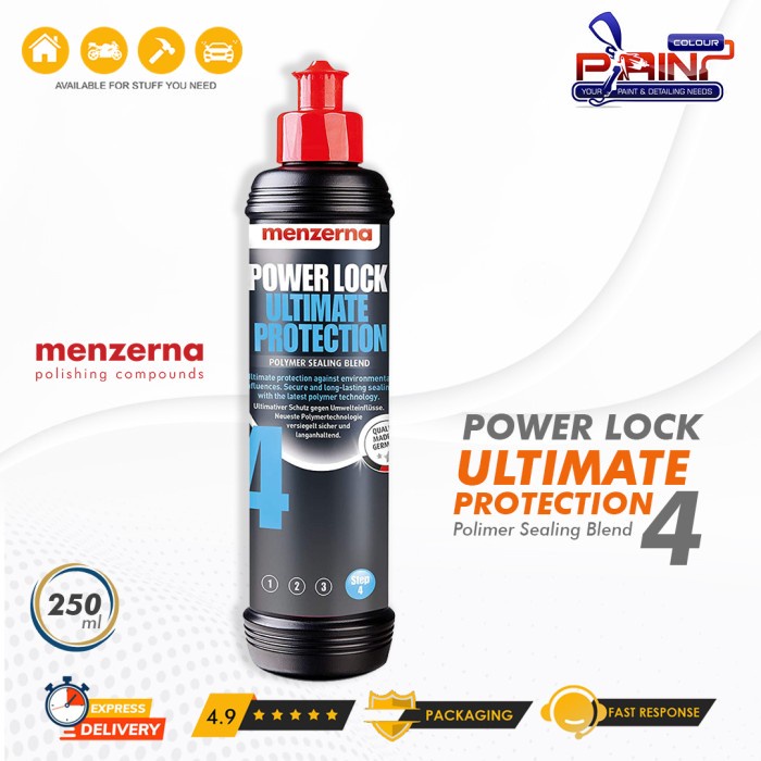 DESKRIPSI Polymer coating sealant untuk tahap akhir pemolesan. Spesialis jangka panjang bertindak sebagai sealant yang lama, melindungi dengan handal terhadap pengaruh lingkungan dengan efek manik-manik yang tak tertandingi dan mendalam. Manfaat penggunaan : - Teknologi penyegelan generasi terbaru - Masa pakai yang sangat lama - Perlindungan maksimum terhadap pengaruh lingkungan - Perilaku manik premium - Melindungi nilai kendaraan