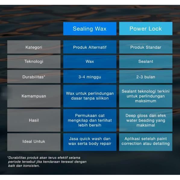DESKRIPSI Polymer coating sealant untuk tahap akhir pemolesan. Spesialis jangka panjang bertindak sebagai sealant yang lama, melindungi dengan handal terhadap pengaruh lingkungan dengan efek manik-manik yang tak tertandingi dan mendalam. Manfaat penggunaan : - Teknologi penyegelan generasi terbaru - Masa pakai yang sangat lama - Perlindungan maksimum terhadap pengaruh lingkungan - Perilaku manik premium - Melindungi nilai kendaraan