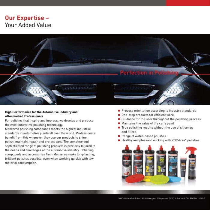FUNGSI * Step 3 * Menghilangkan hologram, goresan tipis-halus, & mencegah terjadinya 'clouding' * Cocok untuk aplikasi obat finishing (ex. Menzerna Final Finish 3000, Menzerna Super Finish 3500, Menzerna Super Finish Plus 3800)