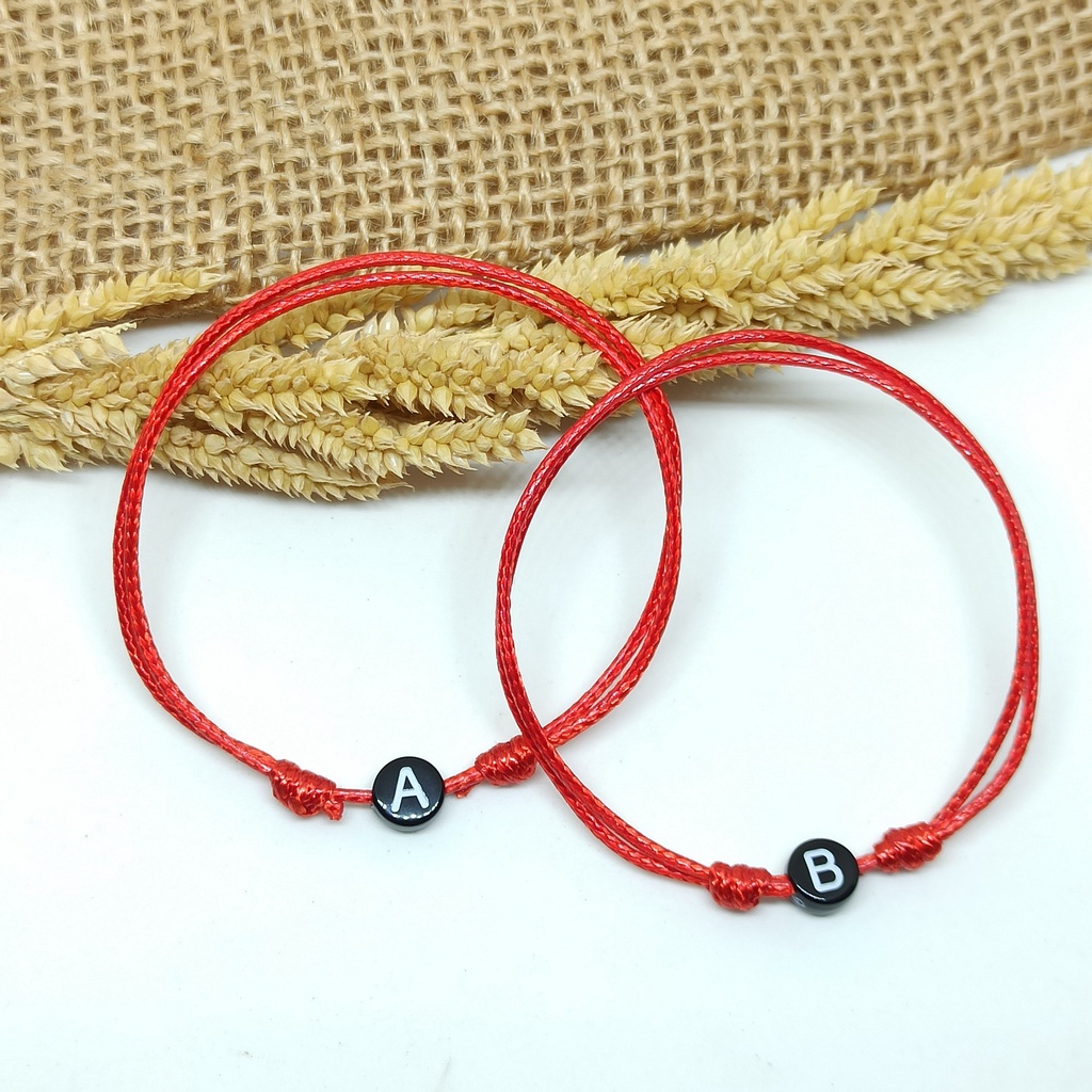 Detail [Merah] 1mm Gelang Tali Inisial Merah / Gelang Couple Inisial / Gelang Merah Polos