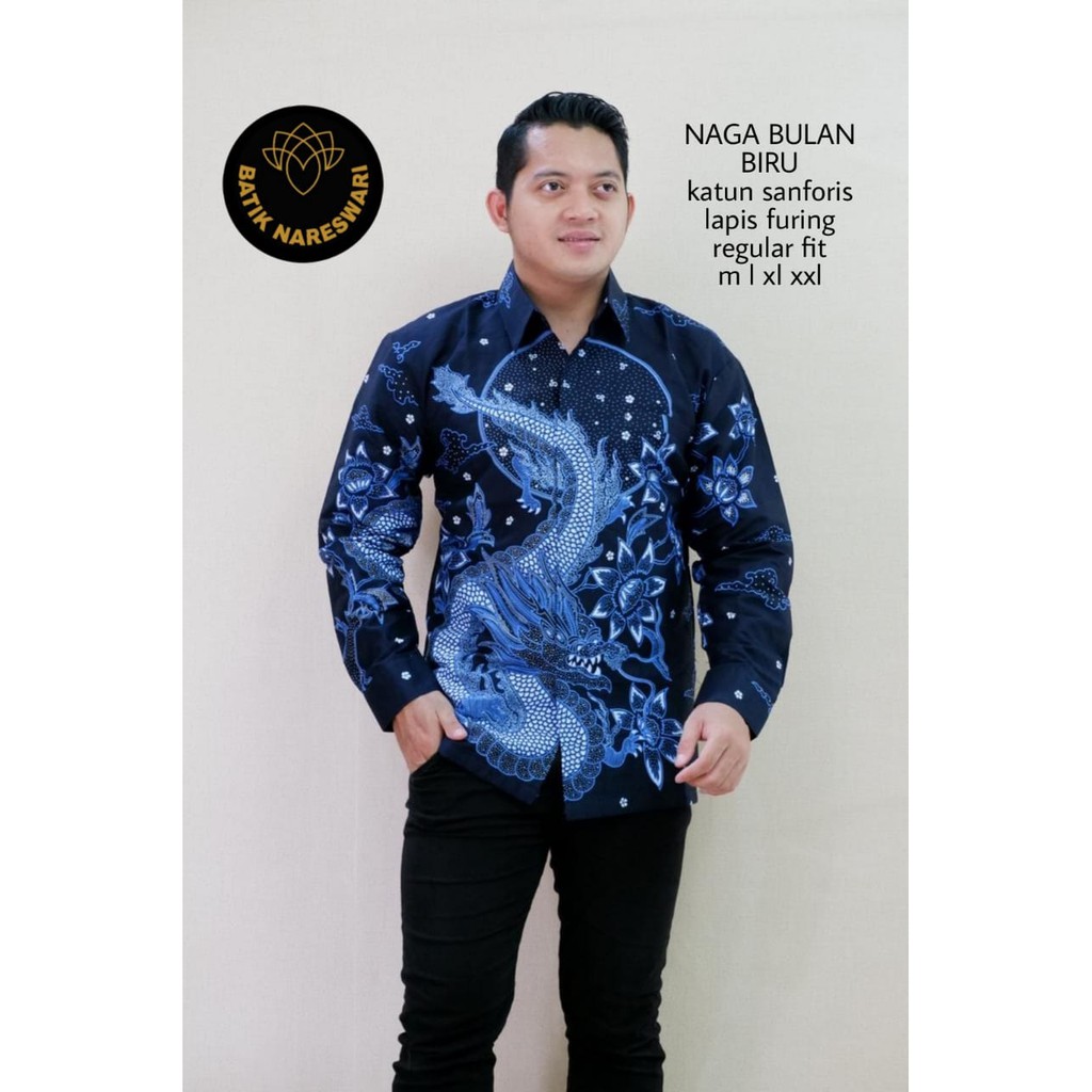 Detail MERAK BIRU Kemeja Batik Pria PREMIUM Baju Seragam Kantor Lengan Panjang Katun Halus FULL FURING NR