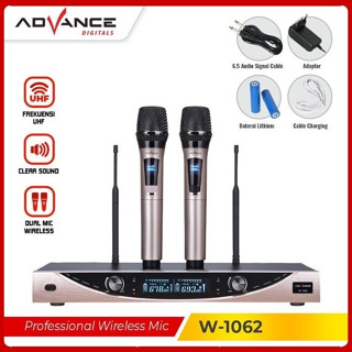 Microphone Double Wireles Advance W-1062 UHF Digital CHarger sytem-Garansi resmi