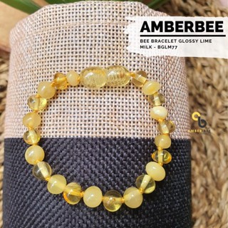 Gelang Amber Baltic Lithuania Balita & Anak Premium Glossy Lime Milk BGLM77 By Amber Bee