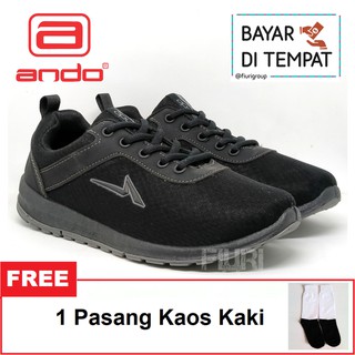 FIURI - Ando Original - XANDER 39-43 Full Hitam - Sepatu Kets Pria - Sepatu Sneakers Pria - Sepatu Olahraga Sport Pria - Sepatu Casual - Sepatu Jogging Lari Fitness Gym Senam Pria - Sepatu Sekolah Bertali SD SMP SMA - Fiuri