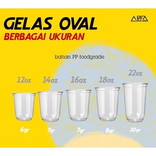 Gelas oval dan datar isi 50pcs / foodgrade plastik 14oz 16oz 18oz 22oz up