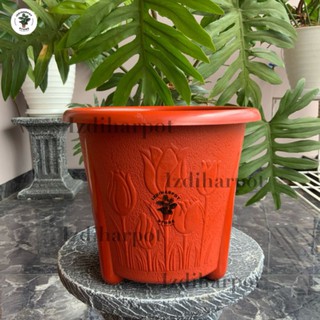 pot bunga tanaman motif bunga tulip 25cm MERAH BATA - TULIP 07K MERAH BATA