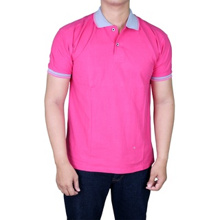 Kaos Polo Kerah Tangan Pendek Pria - Pink Fanta Kerah Abu - PLS 109