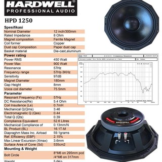 Komponen Speaker Hardwell HPD 1250 HPD1250 HPD-1250 12 inchi Original