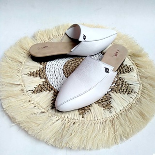 Tutong Bustong Wanita Kulit Asli Selop Slop Warna Putih