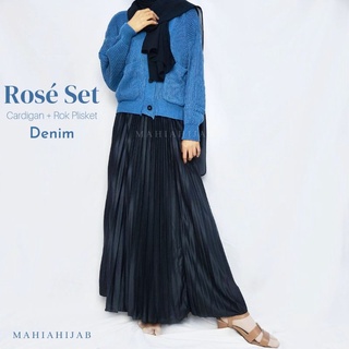 1Set Rosè Cardigan + Rok by Mahiahijab knitwear saku depan korean style rajut
