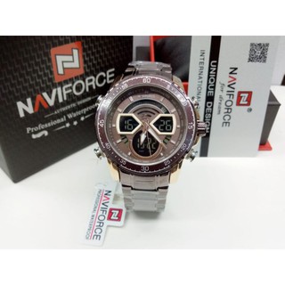 JAM TANGAN COWOK DUAL TIME RANTAI STAINLESS TYPE NAVIFORCE NF-9195 ORIGINAL WATERESISTAN 3 ATM/JAM TANGAN COWOK DUAL TIME ANALOG-DIGITAL