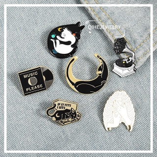 27gaya Kartun Kucing Kerah Pin Berkebun Tanaman Hijau Kucing Musik Kucing Bros Hadiah Untuk Teman Pakaian Aksesoris Perhiasan