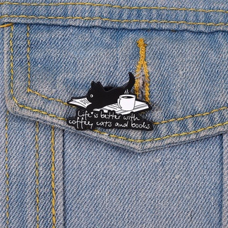 Pin Lencana Bentuk Kucing Hitam Dan Putih Untuk Aksesoris Pakaian