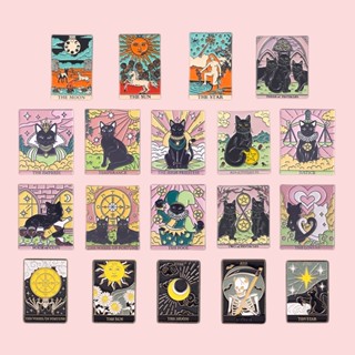 Bros Pin Enamel Desain Kucing Bulan Bintang Gaya Punk Warna Hitam