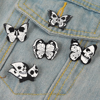 Bros Pin Enamel 5 Gaya Punk Bentuk Tengkorak Butterfly Untuk Hadiah Teman