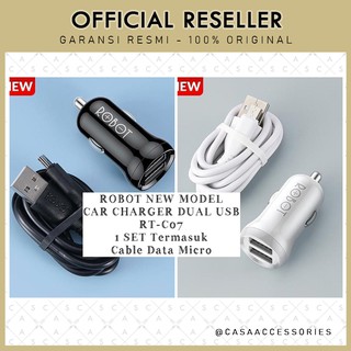 Robot RT-C07 2.4A Dual USB Car Charger Saver Mobil + Cable Data Micro