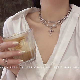 Double-layer twin kalung untuk wanita in hip hop gaya dingin kalung 2021new trendi temperamen klavik