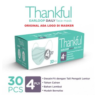 MASKER THANKFUL DAILY MASK HEADLOOP 4 PLY ISI 30 PCS