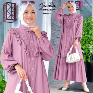 Gamis Terbaru Gendhis Shofiya Rayon Premium Dress Wanita Kerah Peterpan Longdress Rempel Full Kancing LD 115 cm