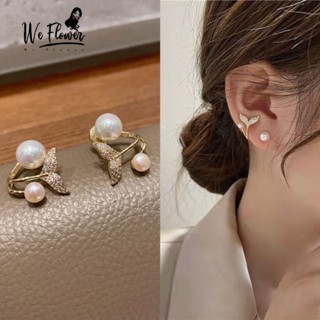 We Flower Anting Stud Desain Kupu-Kupu Ekor Ikan Hias Kristal Mutiara Gaya Korea Untuk Wanita