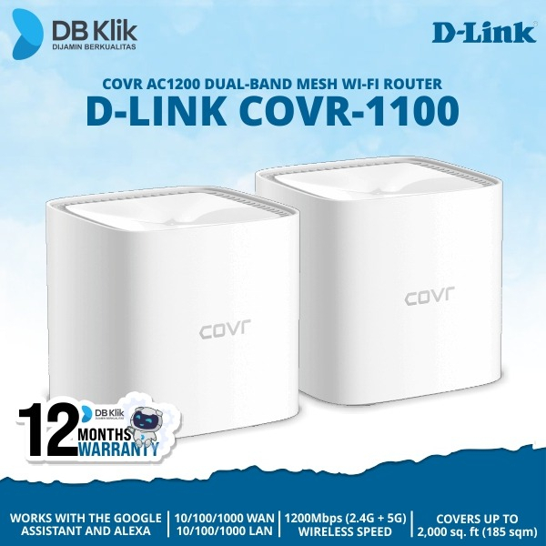• High speed AC1200 Dual-Band Wi-Fi • Industry Standard Wi-Fi CERTIFIED EasyMesh™ for more flexibility • 2 COVR points cover up to 3,500 sq. ft (325 sqm) with high-speed Wi-Fi • Works with the Google Assistant, Alexa and IFTTT • Add COVR-1100 units to expand your mesh Wi-Fi network as you wish • Profile-based Parental Control for setting boundaries online • Super simple set-up with the D-Link Wi-Fi App