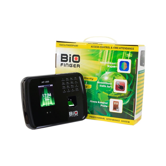 ►►► SPESIFIKASI AF-460 : ▪ Layar Tampilan : 2.8" TFT LCD Warna ▪ Metode Identifikasi : Jari, Wajah, Kartu dan PIN ▪ Waktu Identifikasi : <= 0.5 detik ▪ Kapasitas Wajah : 1.500 (Real, Not Fake) ▪ Kapasitas Sidk Jari : 2.000 (Real, Not Fake) ▪ Kapasitas Kartu RFID : 2.000 (Real, Not Fake) ▪ Kapasitas Transaksi : 100.000 record ▪ Komunikasi Data : USB Flash, LAN ▪ Sumber Daya : DC 12V - 3.0A, Internal Baterai ▪ Akses Kontrol : Sederhana ▪ Software OFFLine : BioFinger Personal, Att Manag ▪ Software OnLine : www.biocloud.id ▪ Support WebServer, GEISA dan DAPODIK