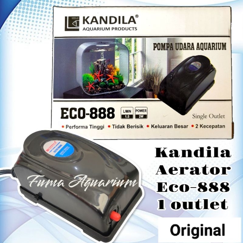 Merk: kandila model: Aerator Airpump 1 Lubang type: eco-888 power: 2 Watt outlet: 2.5 L/min Mesin Aerator saja tanpa selang tanpa batu Airstone