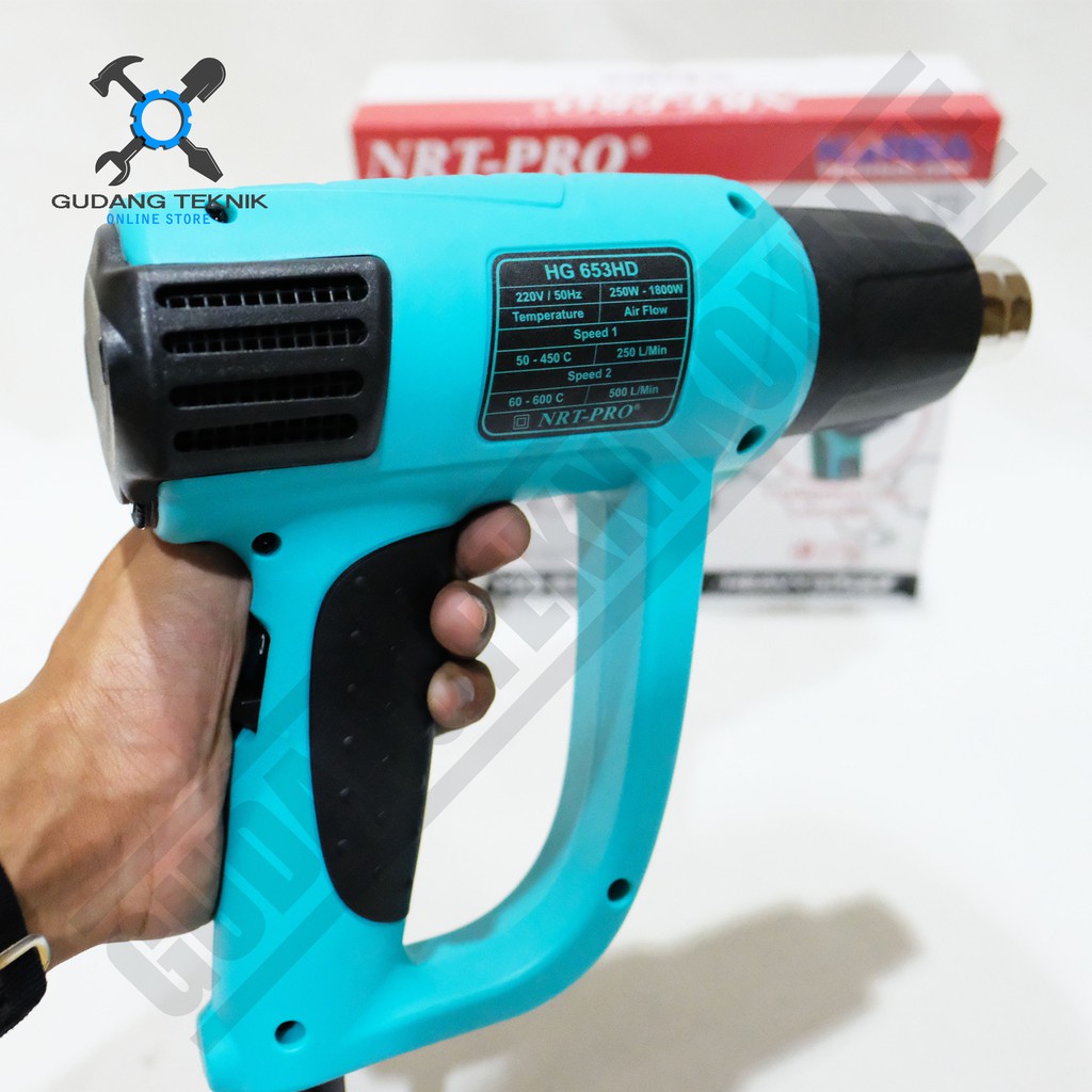 Fungsi Heat Gun NRT-PRO HG653 HD : - Sablon - Mengupas cat dan vernis - Mengeringkan kayu yang masih basah - Melepas sticker - Membengkokkan pipa dan lembaran plastik