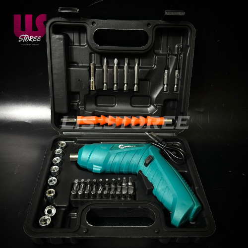 Bor obeng elektrik ini hadir dengan 45 jenis mata baut, sangat cocok untuk Anda yang membutuhkan berbagai jenis mata baut tanpa perlu repot membelinya secara terpisah. Obeng listrik menggunakan tenaga 3.6 V.