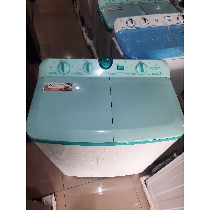 Polytron Mesin Cuci 2 Tabung 10 Kg PWM-1076 Fitur : Washing Program Lembut / HIjab, Normal, Kuras Magic Gear Big Capacity Big Pulsator Water Selector Water Filter Spin Shower Lint Filter Anti Rust/ Rust free 3 years warranty