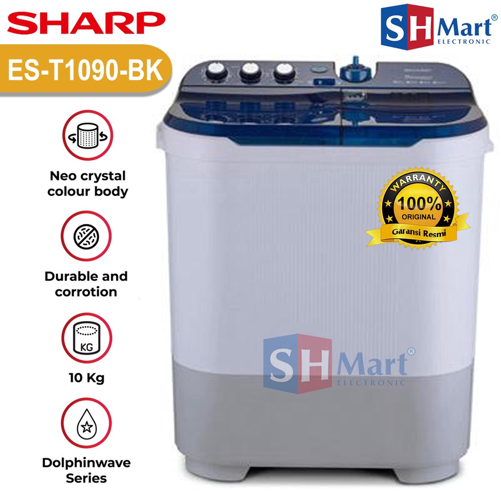 Detail MESIN CUCI SHARP 2 TABUNG 10 KG AQUAMAGIC KG ES-T1090 / EST1090 DOLPHIN PULSATOR GARANSI RESMI
