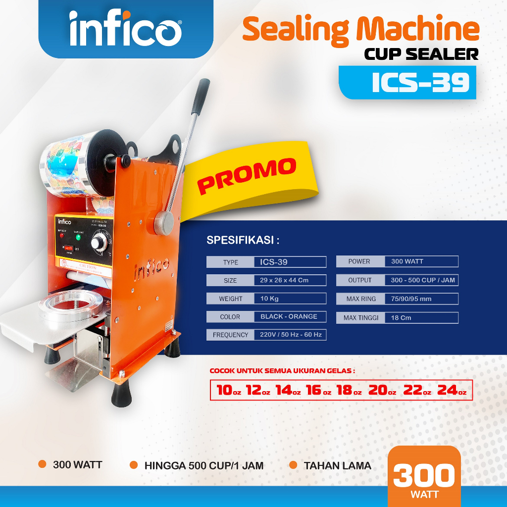 Mesin Sealer Cup INFICO / Mesin Penutup Minuman Plastik / Alat Pres Gelas Plastik Cup Sealer Advance ICS-35, 39 bisa di pakai buat segala jenis gelas