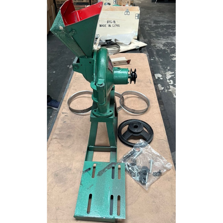 Spesifikasi : * Model :FFC 15 * Engine Power yg dibutuhkan : 5,5Hp / 6,5Hp * Electromotor Power yg dibutuhkan : 1,5Hp 2800rpm * Produktifitas : 55 Kg/Jam * Kecepatan Shaft Utama : 8800 R.P.M * Include : 3 pcs Saringan (Halus , Sedang dan Kasar)