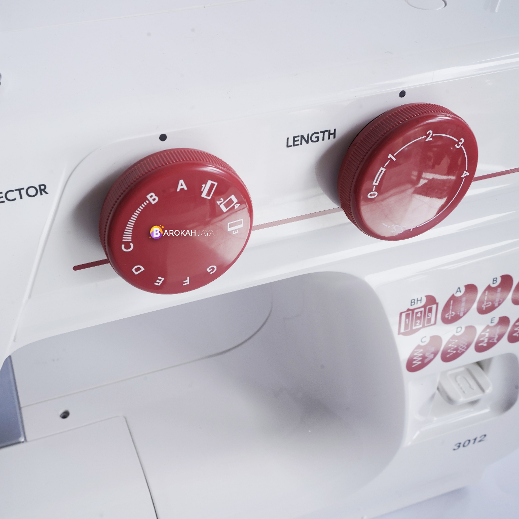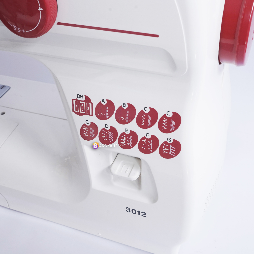 Fungsi : Jahit lurus,Jahit Zig-Zag,Semi obras,Semi neci,Pasang Retsleting Biasa & Resleting Jepang,Lubang dan Pasang kancing, Aplikasi Feston, 1/4 PatchworkBordir,Quilting/Menjahit Bebas,Jahit Kelim,Jahit kerut(Lipatan Rok),dll.