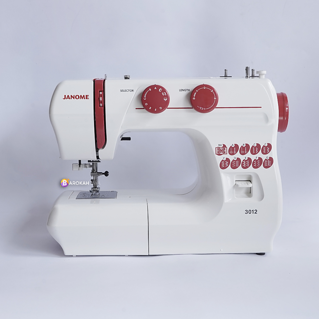Merek : JANOME (JAPAN) Tipe : 5012 Made in : Taiwan Kelas Mesin : Mesin Jahit Portable (Mesin Jahit Portable tidak menggunakan meja)