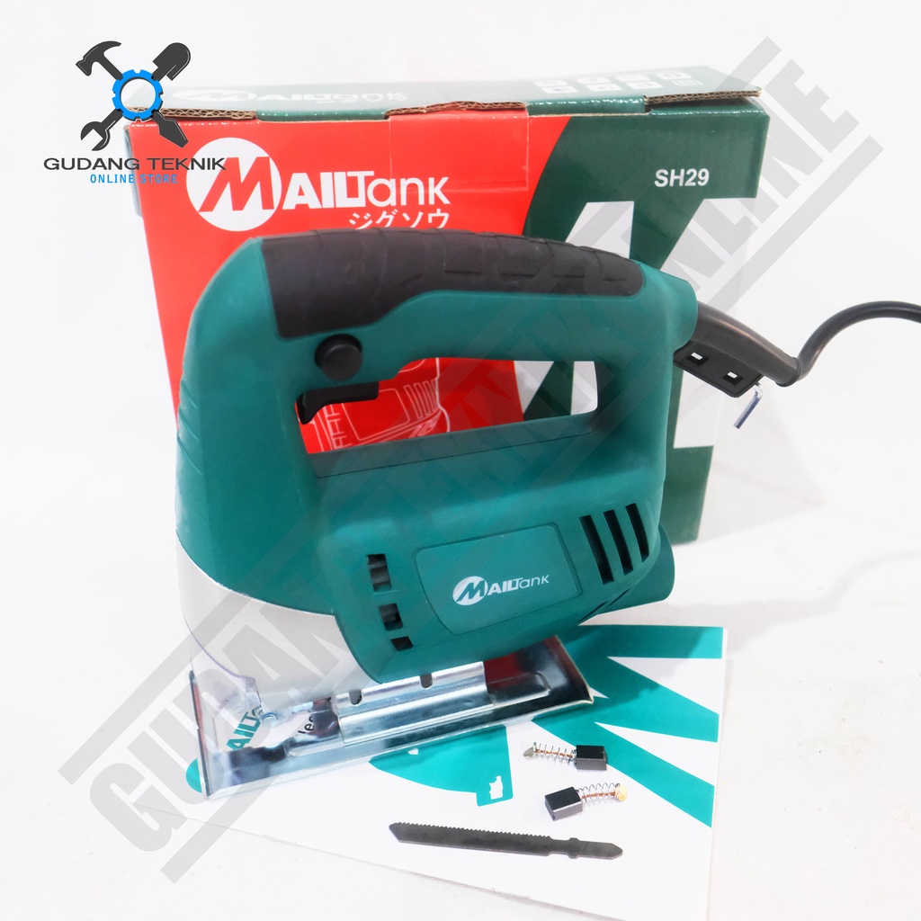 Mesin gergaji listrik jigsaw dari MAILTANK. Dapat digunakan untuk pemotongan segala macam material seperti kayu, aluminium, besi, pvc dan lain-lain (sesuai mata yang digunakan).