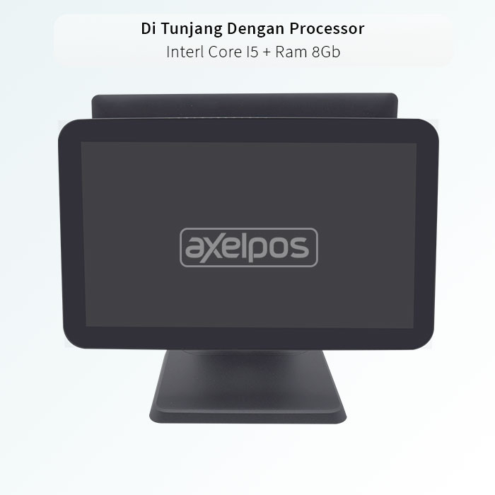 • All in One POS Touchscreen • Dual Display 15.6 Inch • 1920 x 1080 Resolusi • Intel Core i5 (2.0GHz/3.1 GHz) • Windows OS • 8 GB RAM • 256 GB SSD • Stand Metal • Wall Mount Kit VESA Compatible 75*75 • Bluetooth 4.0 • Wifi 2.4G 144 Mbps/5G 300Mbps • Garansi 1 Tahun
