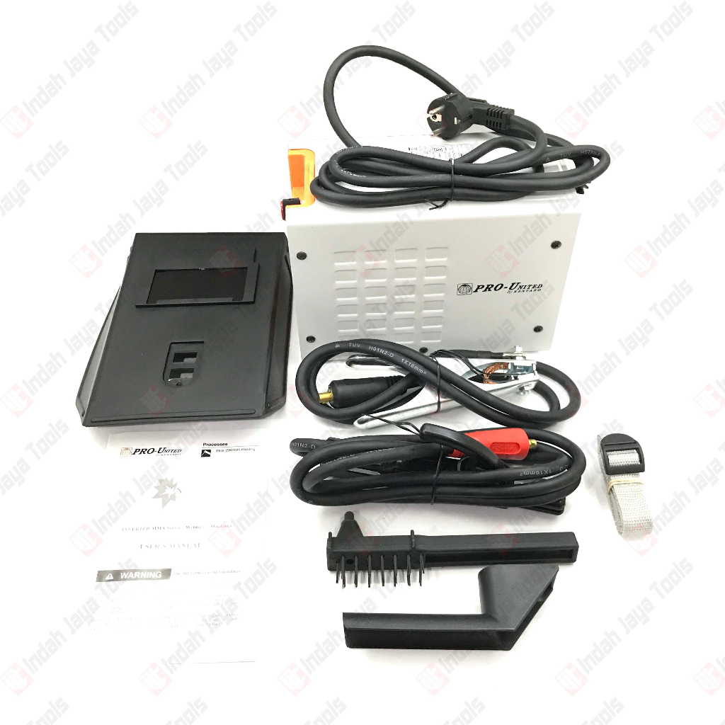 Brand : Pro United by Kentaro Type : MMA-120PU Input : 450 - 1.300 watt ( tergantung kawat ) Output : 20 A - 120 A Ukuran Connector : 25mm Range Kawat : 1.6mm - 3.2mm Rated Duty Cycle : 60%