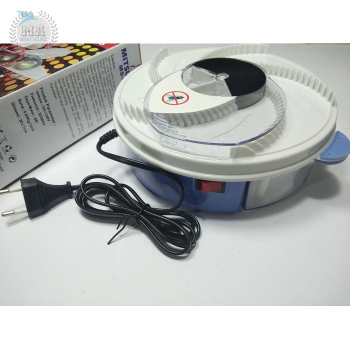 13519-2851 Bila rumah Anda atau tempat usaha Anda sering terdapat banyak lalat? Gunakan perangkap elektrik ini untuk menangkap semua lalat pengganggu.- Penggunaan yang sangat mudah hanya dengan meletakkan tetesan pewangi madu pada piringan di alat ini, lalu nyalakan power, piringan berputar otomatis dan mulai bekerja,- Pada saat lalat terpancing terhadap umpan, putaran dari piringan khusus akan memaksa lalat masuk kedalam lubang perangkap di dalam.Membersihkan alat ini juga mudah. Cabut saklar power, lepaskan clip di kedua sisi, lepaskan kotak, tambahkan air dan sedikit sabun untuk membersihkan kotak penampung lalat dan pasang kembali.Motor power : 4 WattFrekuansi : 50HZBerat : 650 gram