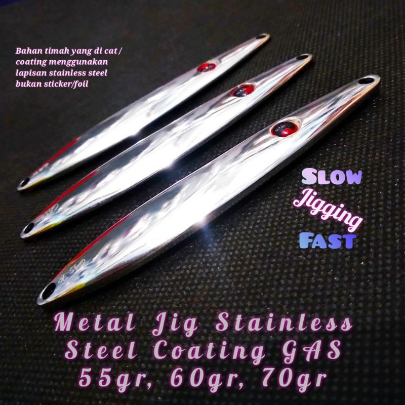 Metal Jig 60gr & 70gr dengan lapisan Coating Stainless Steel ini lebih unggul dari pada Metaljig pada umumnya , sangat amis dan killer untuk ikan ikan target seperti tenggiri/GT/Barracuda/Jenaha/Kakap Merah ,etc Cocok pada pengaplikasian Castjigging maupun Slowjigging Coating Stainless lebih tahan lama daripada sticker / foil sticker yang mudah terkelupas setelah terkena gigitan ikan