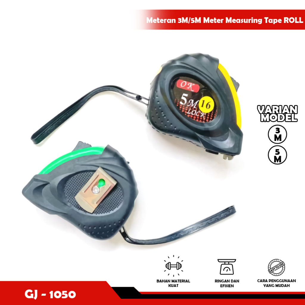 Alat meteran dengan teknologi auto lock yang memudahkan Anda dalam menggunakannya untuk keperluan rumah tangga, konstruksi, dll. Meteran sangat mudah dibawa kemana-mana, digantungkan, ringan namun panjang. Tali meteran sangat mudah dan lincah ditarik - tidak serat.