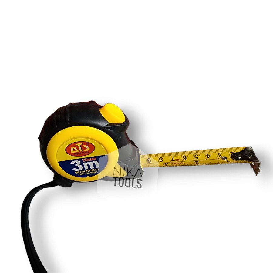 1 biji Meteran rol berkualitas dengan bodi yang terbuat dari plastik-karet, ujung magnet, dan fungsi pengunci otomatis. Merk : ATS. Terbuat dari plat yang berkualitas, kuat dan tahan lama. Ujung magnet, memudahkan proses untuk mengukur besi (tidak mudah bergeser). Bodi terbuat plastik kombinasi karet, nyaman untuk digunakan, namun tetap kuat dan tidak mudah rusak. Fungsi autolock, meteran secara otomatis terkunci ketika ditarik, mudah untuk digunakan. Untuk menggulung tekan tombol pada bodi. Cocok untuk kebutuhan rumah tangga ataupun sebagai peralatan pertukangan. Variasi panjang - 3 meter