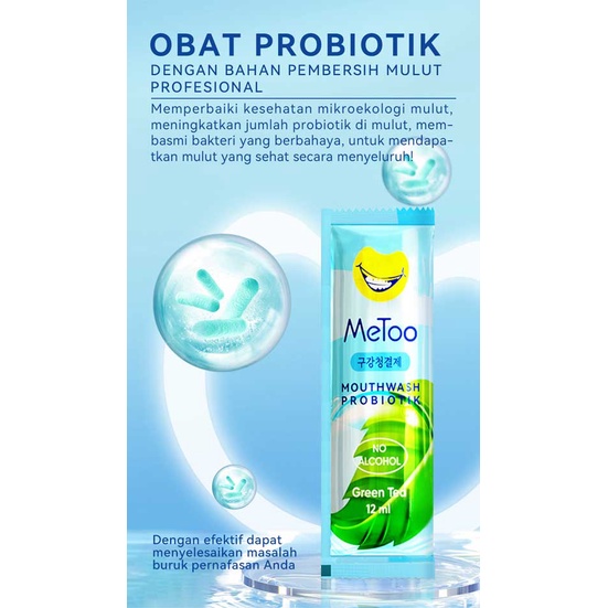 METOO Mouthwash Portable Green Tea || Obat Kumur Probiotik || Nafas segar || Pemutih gigi HARGA PER SACHET YA