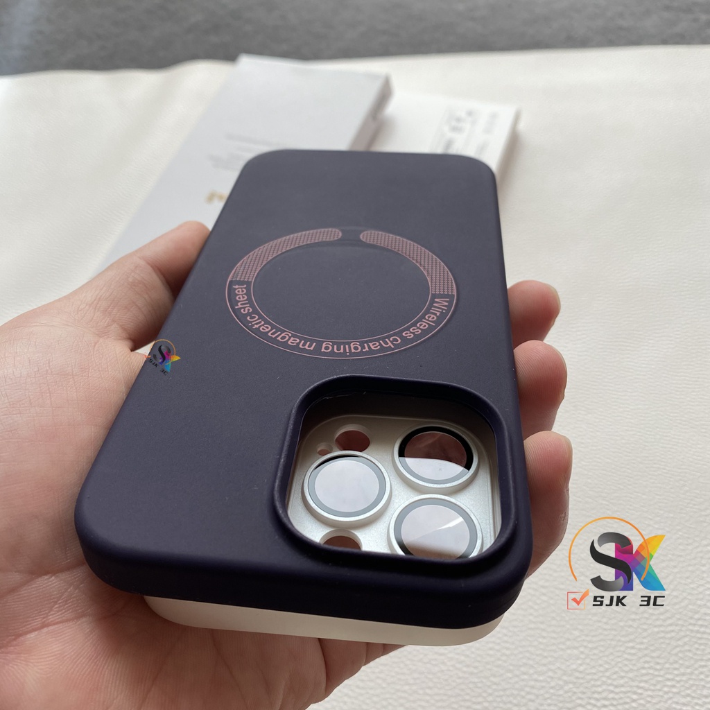 Handphone & Aksesoris > Casing & Skin > Casing & Skin Handphone > Mewah Plating Magnet Hitam Biru Tua Ungu silica gel magnetic case Untuk iPhone 11 Pro Max 12 Pro Max 13 Pro Max 14 Pro Max Silikon Cair Pengisian Magnetik Casing Handphone
