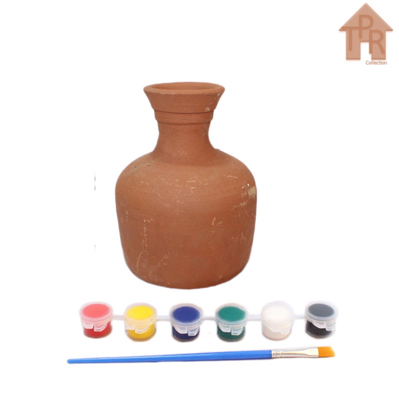 + FITUR ; ~ MADE IN INDONESIA. ~ Vas gerabah prakarya biasa dipakai kerajinan tangan disekolah. ~ Harga sudah termasuk dengan set cat akrilik 6 warna + 1 kuas. + SPESIFIKASI ; ~ Vas dijual masih dalam keadaan polos. ~ Vas berbahan tanah liat yang sudah melewati pembakaran. ~ Tersedia dua ukuran pilihan : 1. Kecil T13, tinggi 13cm.x diameter 10cm. 2. Besar T17, tinggi 17cm.x diameter 11cm. ~ Berat 350/500 gram.
