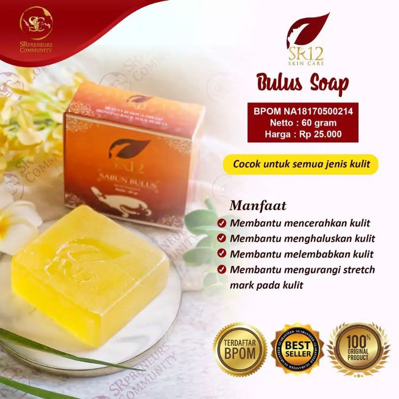 Manfaat : Sabun bulus yang kaya akan vit. A, C, dan vit. E, bermanfaat untuk Mengencangkan, menghaluskan kulit, mencerahkan, melembabkan & membantu mengurangi strecth mark pada kulit.