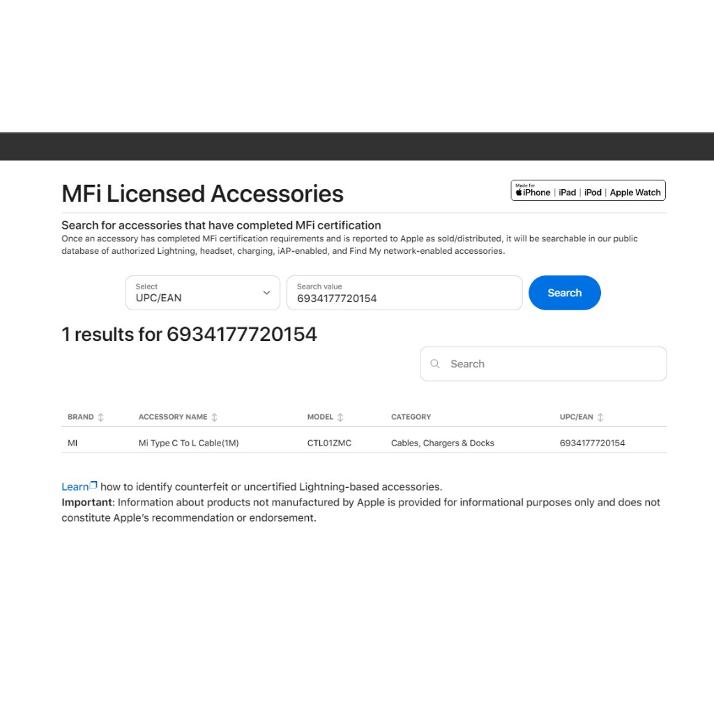 XIAOMI USB-C to Lightning (MFI) 100 cm adalah kabel charger dan sekaligus kabel data yang dikeluarkan oleh Xiaomi (certified dan manufactured by Xiaomi) untuk iOS device, dimana dapat menggantikan kabel original yang mungkin sudah rusak/hilang. Kualitas terjamin untuk arus data dan listrik.