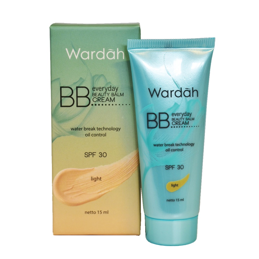 Wardah Everyday BB Cream tekstunya yang ringan dan bisa memberikan cover pada wajah kalian dan cocok digunakan pada kegiatan sehari-hari. BB cream ini juga memiliki kandungan spf 30 didalamnya yang bisa melindungi kulit wajah dari paparan sinar matahari. Dengan Water Break Technology, partikel-partikel air yang terlepas dari formulanya membuatnya terasa dingin, segar dan lembab ketika diapplikasikan. Mengandung Aloe Vera Extract & Bio-Hyaluronic Acid untuk menutrisi sekaligus melembabkan kulit. Witch Hazel extract dan Zinc Gluconate sebagai oil control mengatur produksi sebum sehingga bebas kilap lebih lama.