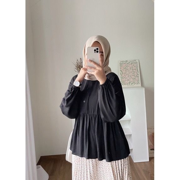 blouse kancing depan busui aktif, pergelangan tangan kerut