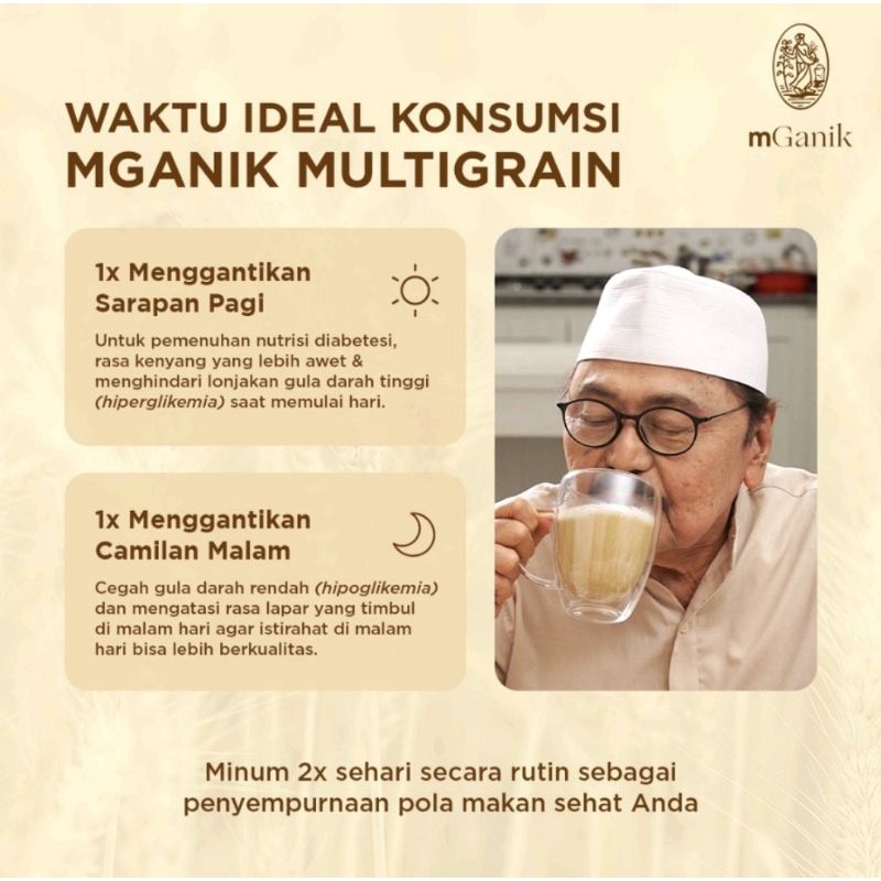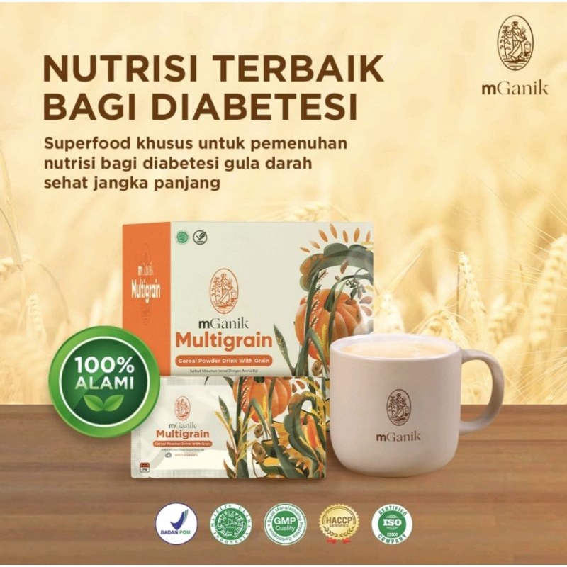 Manfaat mGanik Multigrain: - Gula darah sehat jangka panjang - Turunkan & Stabilkan gula darah tinggi - Atasi gejala diabetes - 100% secara Alami - Rasa kenyang awet (hanya 100 Kkal) - Tingkatkan metabolisme tubuh - Aman bagi lambung & ginjal - Aman dikonsumsi semua kalangan